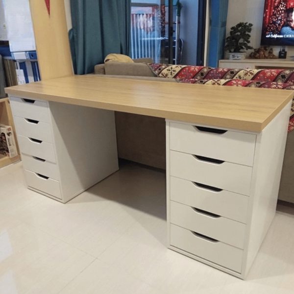 + Hệ chân đỡ 4 trụ gỗ có pass sắt tĩnh điện. Liên kết bàn chắc chắn, với 2 ngăn hộc kéo và 1 ngăn đơn.
