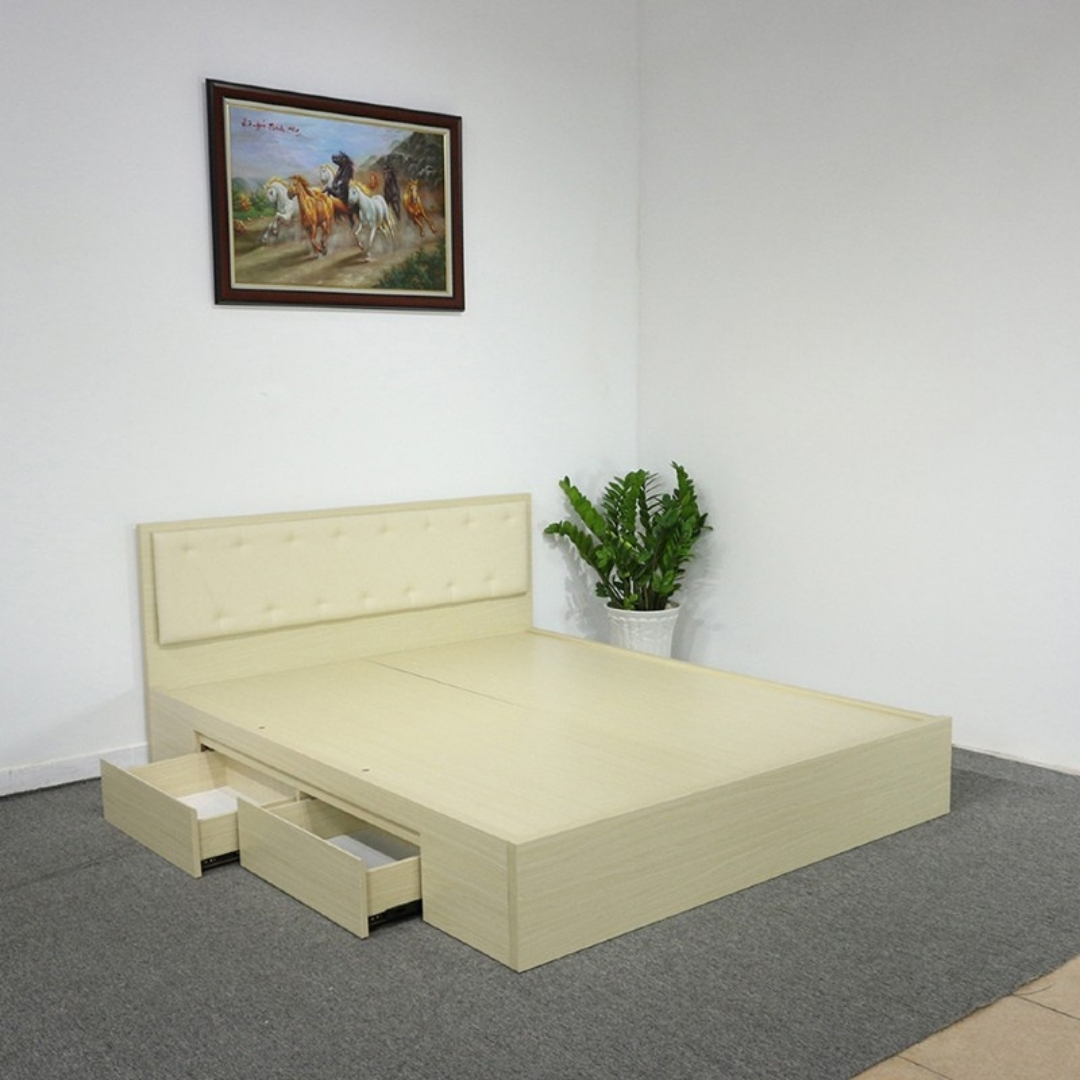 Giường ngủ gỗ MDF có đệm đầu giường 2 ngăn kéo – Tiga0080