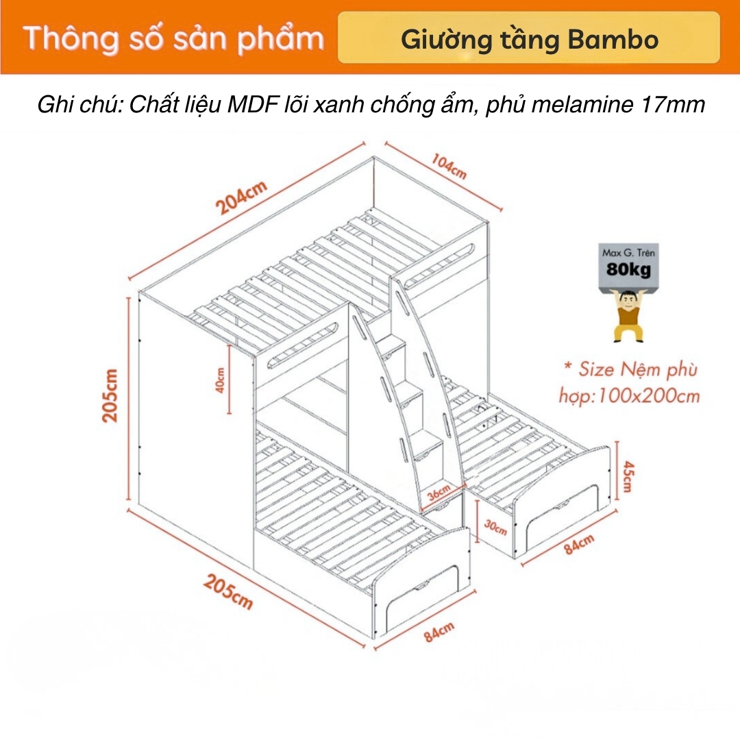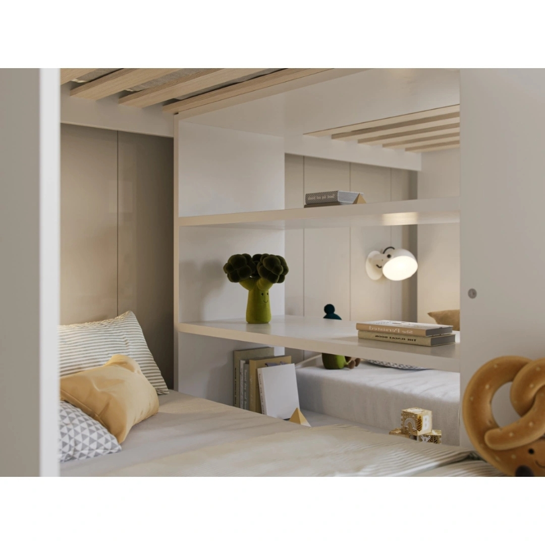 - Không gian nghỉ ngơi lý tưởng: Tầng trên và tầng dưới mang đến chỗ ngủ thoải mái, riêng tư cho hai bé hoặc cho bé và người thân.